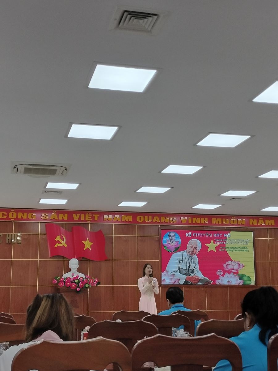 Ngày 07/5/2024, cô Nguyễn Thị Minh đại diện trường THCS Bình Hòa tham gia cuộc kể chuyện bác Hồ. Qua cuộc thi nhằm tạo sự giao luu, học tập kinh nghiệm qua các câu chuyện về Bác. Với tinh thần thi đấu hết mình cô Minh đã hoàn thành mẫu chuyện với sự cổ vũ nhiệt tình của các Công đoàn viên.
