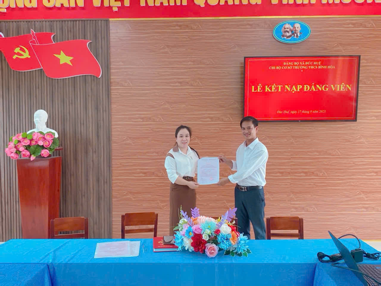 Chi bộ cơ sở Trường THCS Bình Hoà, xã Đức Huệ tổ chức Lễ kết nạp Đảng viên mới